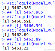 Akaike信息准则(AIC)是另一个模型选择的衡量标准。与似然比检验不同,AIC的计算不仅要考虑模型的拟合度,还要考虑模型的简单性。通过这种方式,AIC处理了模型的拟合度和复杂性之间的权衡,因此,不鼓励过度拟合。较小的AIC是首选。