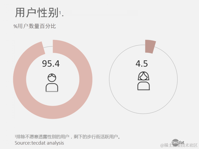 除了不愿透露性别用户外,步行街的剩余活跃用户中,女性仅占4.5%,这与虎扑社区的物理属性基本相同。