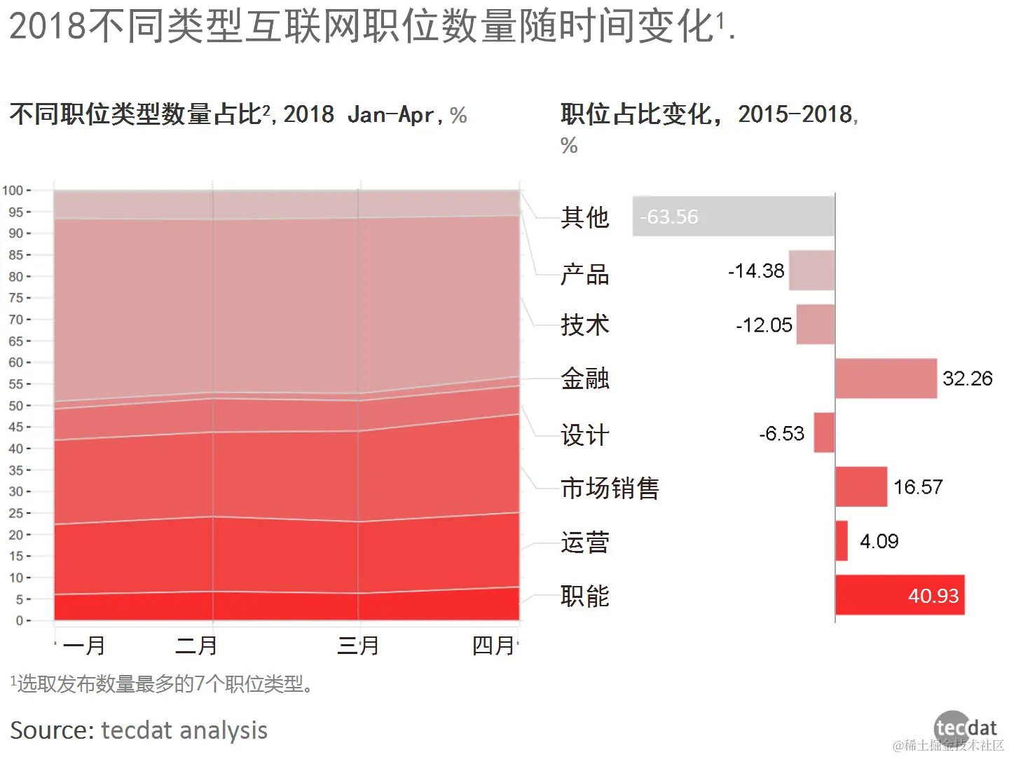 技术类最多,其次销售、运营