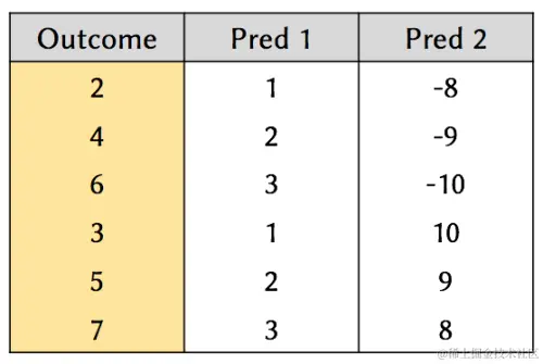 图4.示例数据集,由两个预测变量和一个结果变量组成。