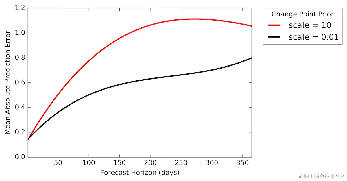 Prophet包还要求我们指定先验值,这些值决定了趋势线对数据值变化的敏感程度。较高的灵敏度会导致更多锯齿状的趋势,这可能会影响对未来值的普遍性。当我们验证我们的模型时,可以调整Priors,我们将在本教程后面看到。