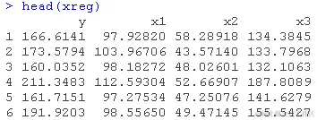 predict(lm(y~x1+x2+x3,xre),newdat