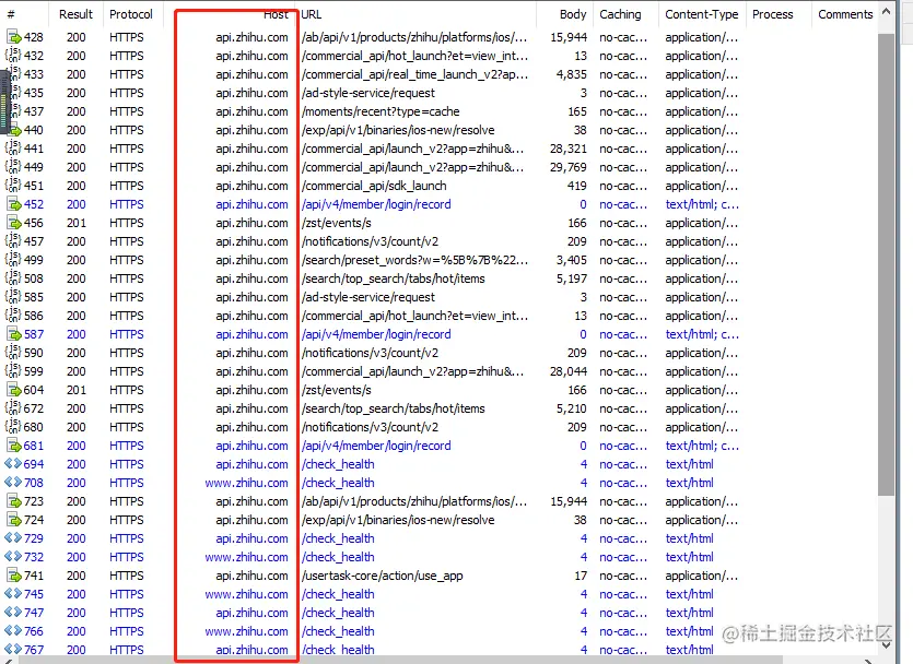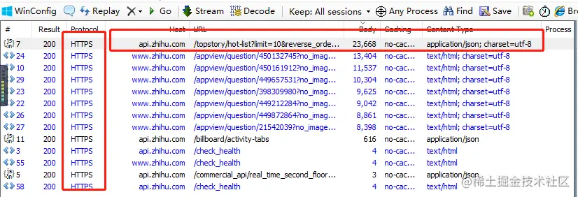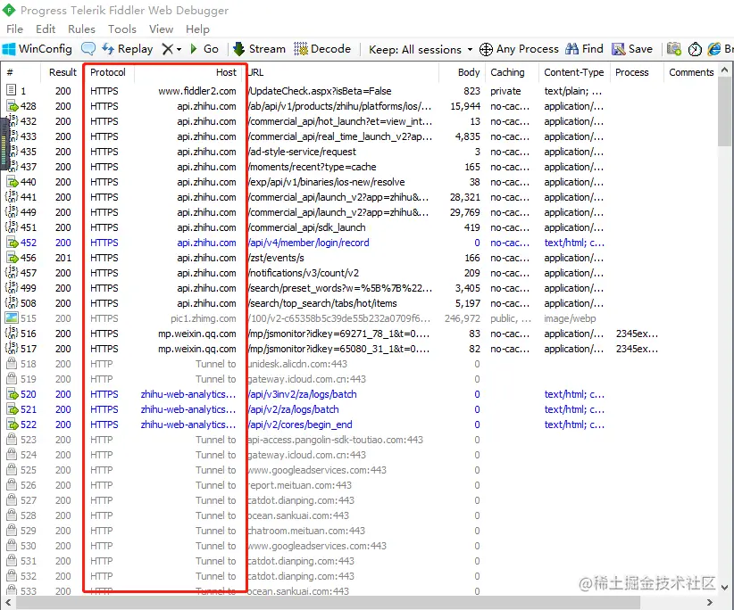 打开app之后,Fiddler就已经抓取到数据了