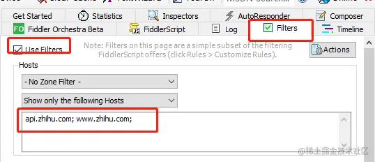 为了更加精准定位到某乎(只看目标的数据包),添加一个过滤条件