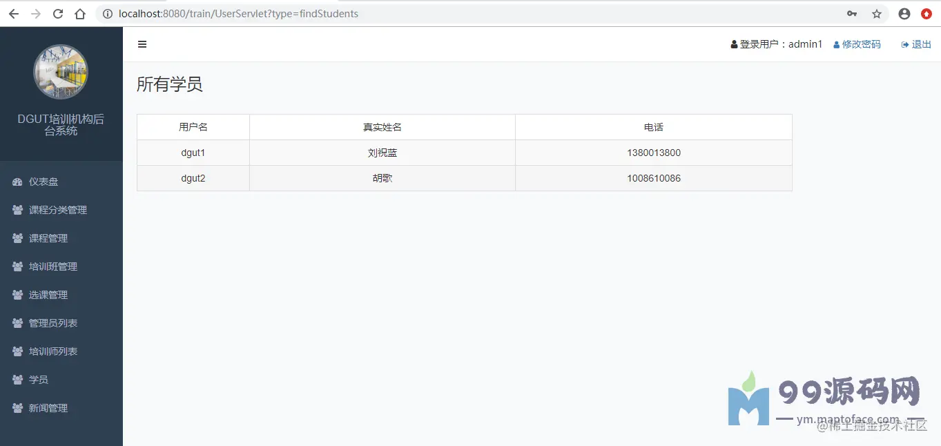 该系统用于协助完成培训机构的教学管理工作,用户有学员、培训师、管理员。