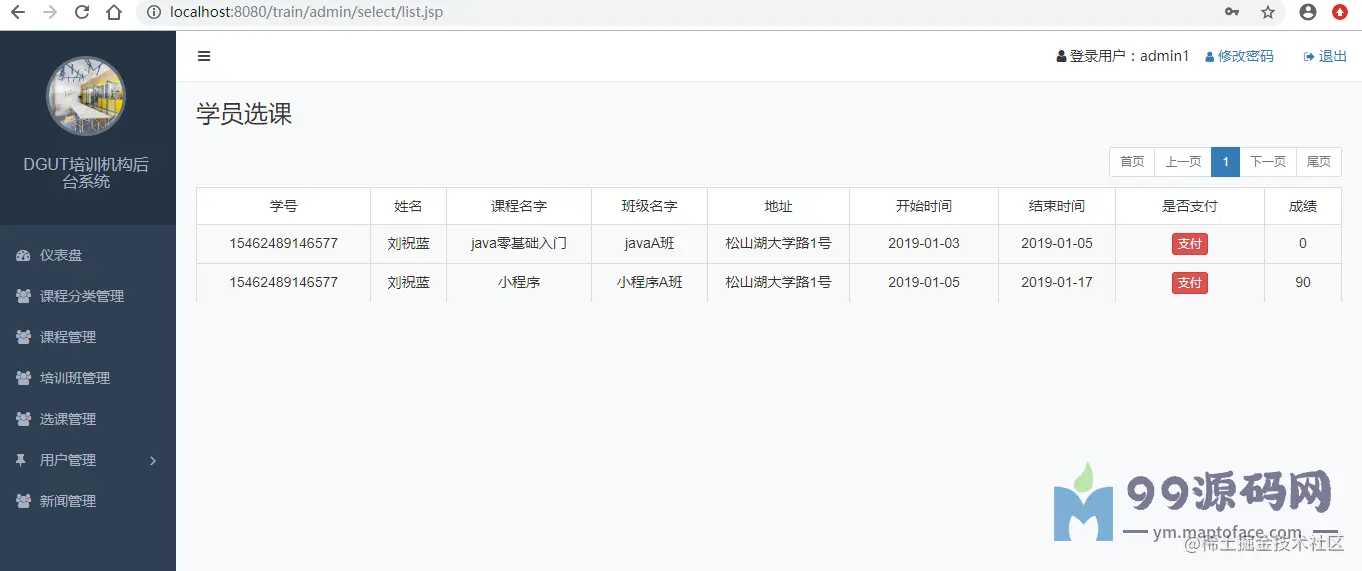 java mysql培训机构管理系统源码+需求文档+运行视频+使用手册+规格说明书