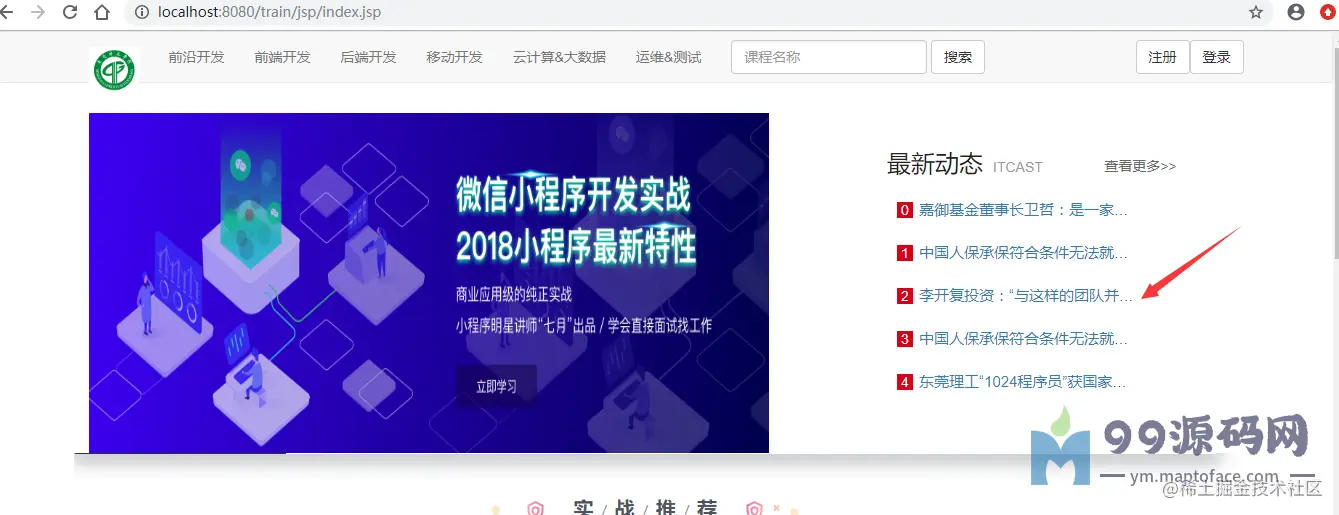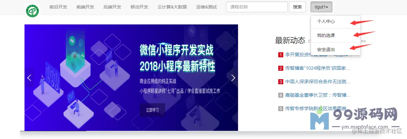 系统首页:显示培训机构的基本信息、新闻、及最新发布的培训信息。学员、培训师、管理员的登录入口均在系统首页。