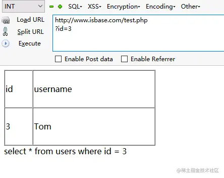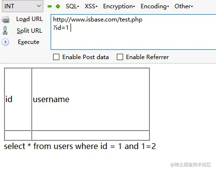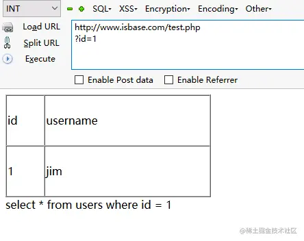 加法,我们在参数输入1+1,看看返回的数据是不是id等于2的结果,这里注意一下+号在SQL语句是有特效含义的,所以我们要对其进行url编码,最后也就是%2b。