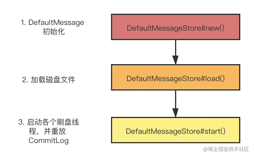 当我们把 broker 重启后,RocketMQ 是如何重新将磁盘的 commitlog 文件重新加载到磁盘中的呢?带着这个疑问,我们来看一下 commitlog 的加载流程