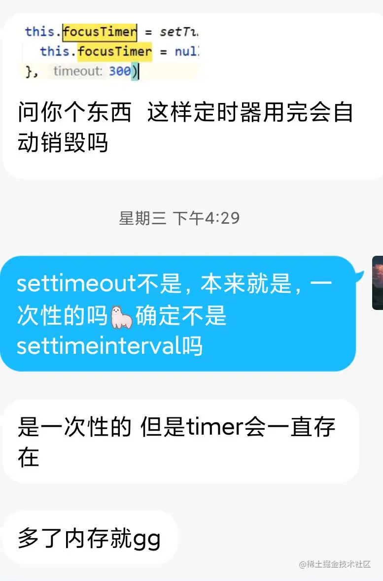 我直觉上自然是觉得,肯定是会销毁的,但是出于科学严谨的态度,我需要更加深入地了解setTime函数的机制,再来回答这个问题。