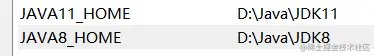 3. JAVA_HOME:设置三个,一个是JAVA8_HOME、一个是JAVA11_HOME、还有一个是JAVA_HOME,在JAVA8_HOME和JAVA11_HOME变量值中填写jdk安装路径: