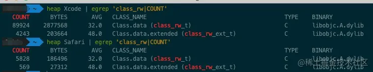 $ heap Xcode | egrep 'class_rw|COUNT'