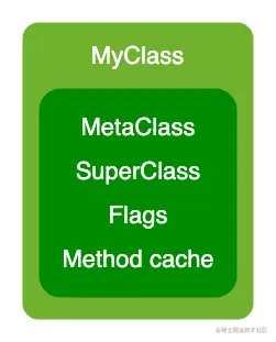 虽然这些数据足以使用,但运行时需要跟踪有关每个类的更多信息,因此当类第一次被使用时,运行时还会为它分配额外的存储空间。