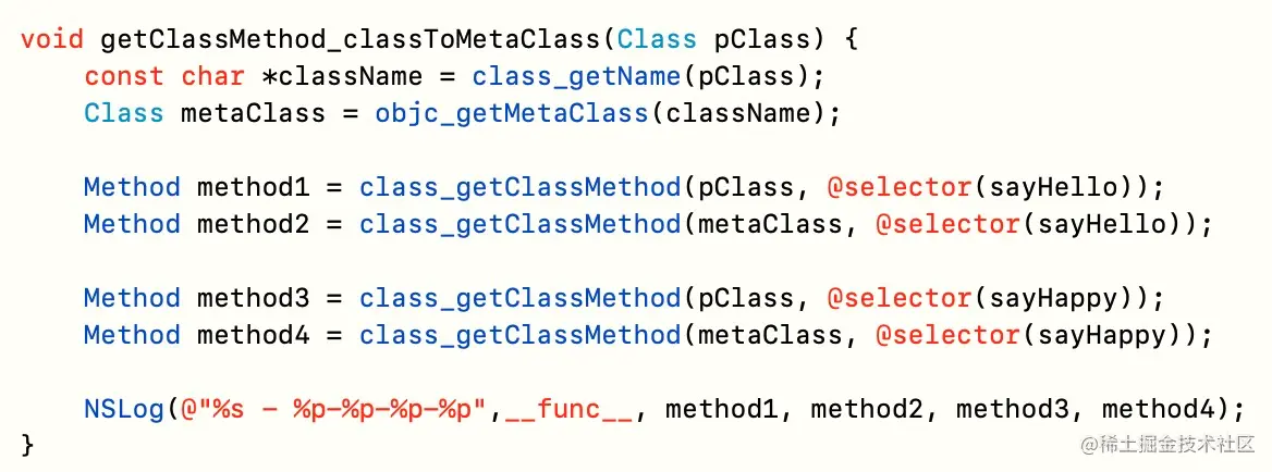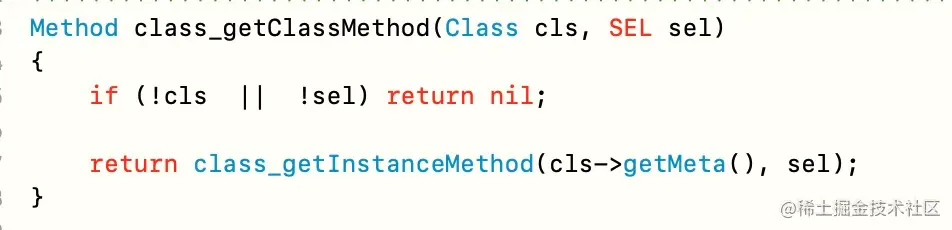 元类,则返回元类本身,否则返回元类isa。这就是为什么获取元类的类方法也可以得到类方法的原因。