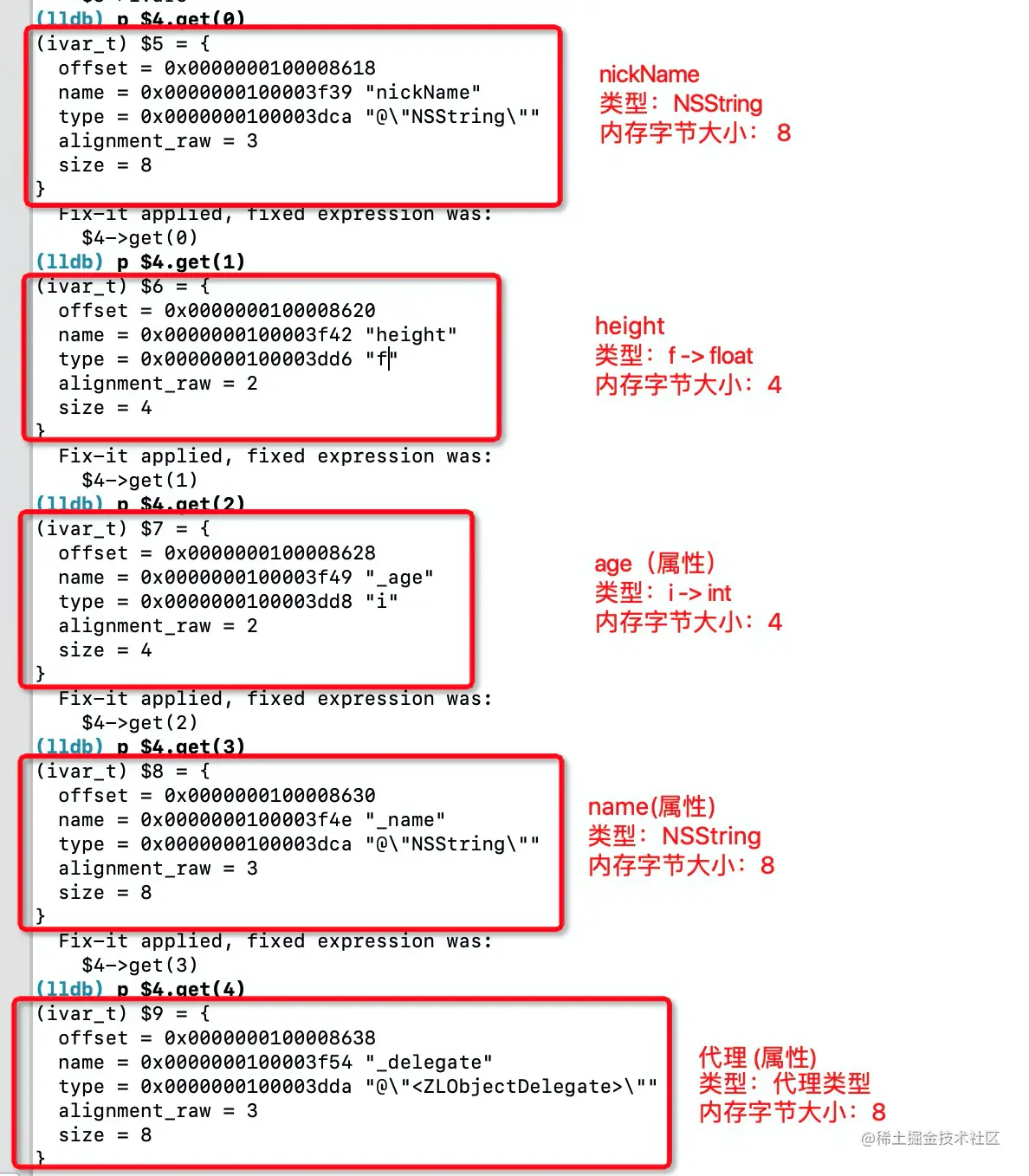 此时,ivars 都存在于 ivar_list_t 中,使用C++数组 get() 获取每个成员变量。