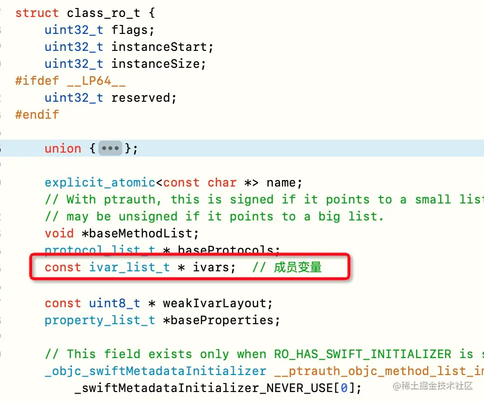 ivars存在于class_rw_t的ro()中,也就是class_ro_t。