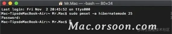 可通过终端命令来查看 Mac 的休眠模式: