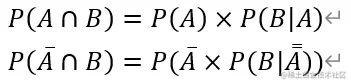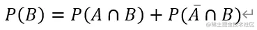 假设事件B有两种发生方式,与事件A一起发生;不与事件A一起发生,那么可以用下面的公式得到事件B发生的概率: