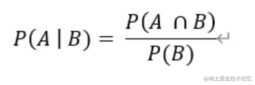 P(A|B)=P(AB)/P(B),条件概率P(A|B) 指在事件B发生的条件下事件A发生的概率,P(AB)表示事件A和B同时发生的概率,P(B)是事件B发生的概率,其演化式可以得到:P(A|B)*P(B)=P(B|A)*P(A)