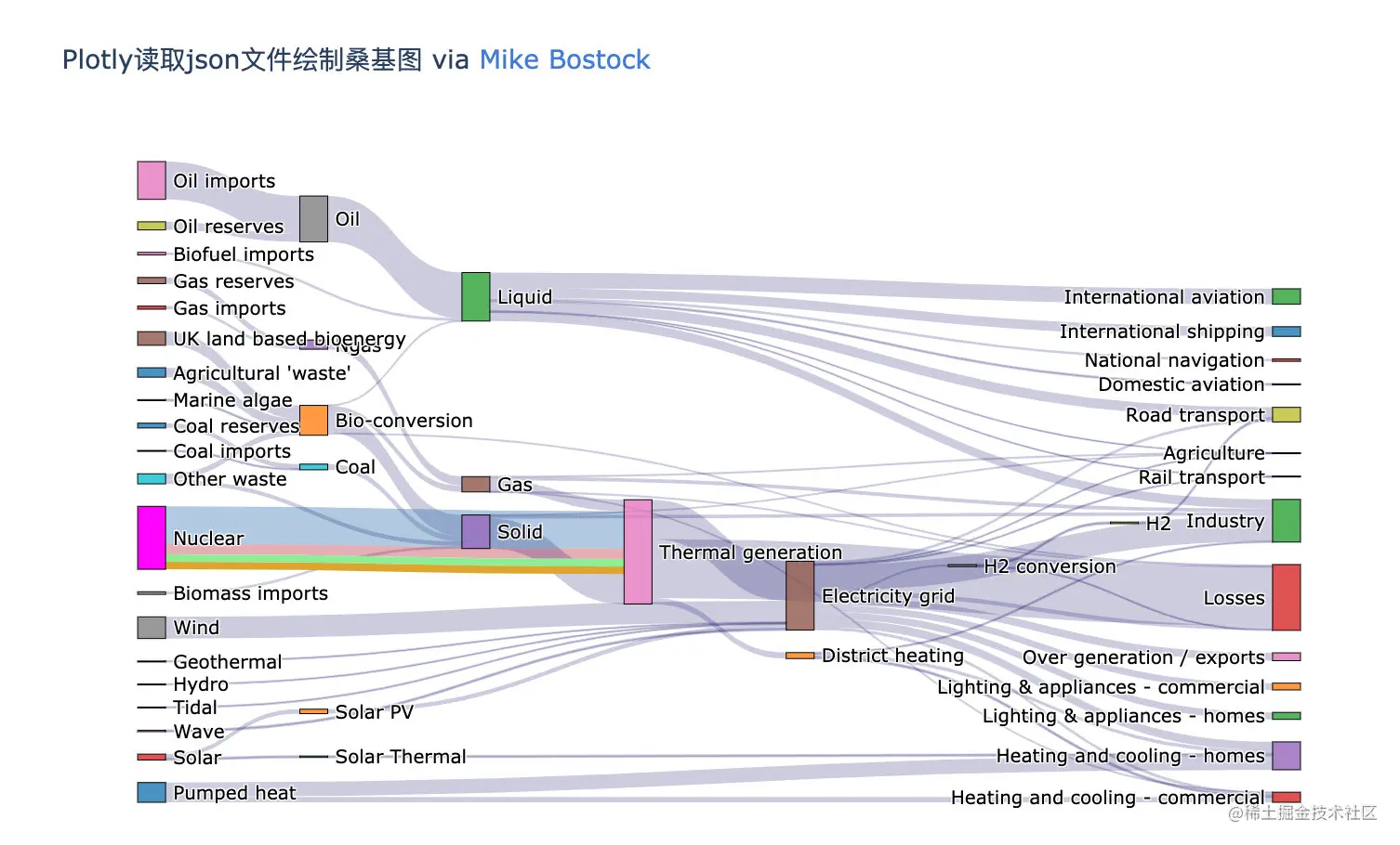 fig.update_layout(title_text="Plotly读取json文件绘制桑基图 via <a href='https://bost.ocks.org/mike/sankey/'>Mike Bostock</a>",