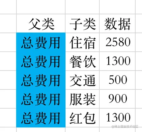 因为桑基图的绘制是需要父级和子级节点之间的数据,所以我们需要先整体下数据: