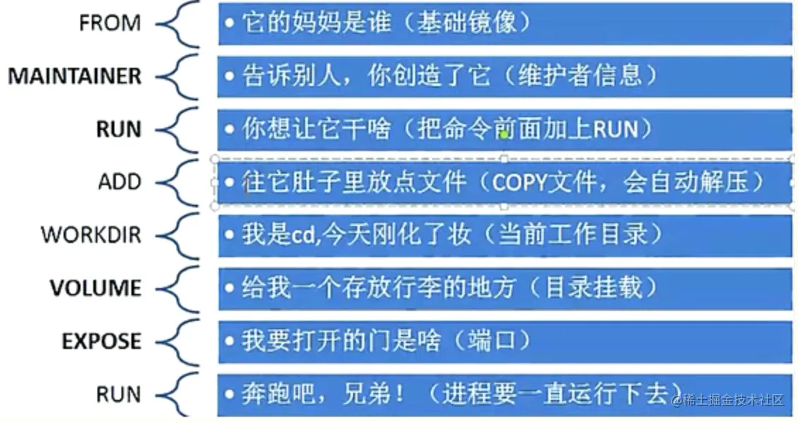 Dockerfile一般分为四部分:基础镜像信息、维护者信息、镜像操作指令和容器启动时执行指令,Dockerfile的指令是忽略大小写的,建议使用大写,使用#作为注释,每一行只支持一条指令,每条指令可以携带多个参数。