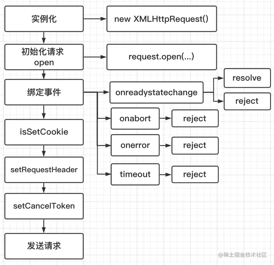 * 内部调用 cancelToken.promise.then 等待状态改变,当外部调用方法 cancel 取消请求,