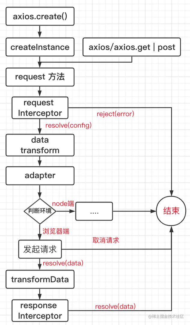 axios.create创建单独实例,或直接使用axios实例(axios/axios.get...)request方法是入口,axios/axios.get等调用都会走进request进行处理- 请求拦截器