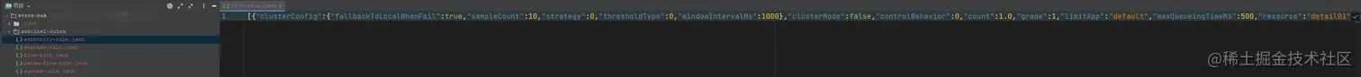 当我们在控制台中添加一条流控规则后,对应的 json 文件就会有对应的配置