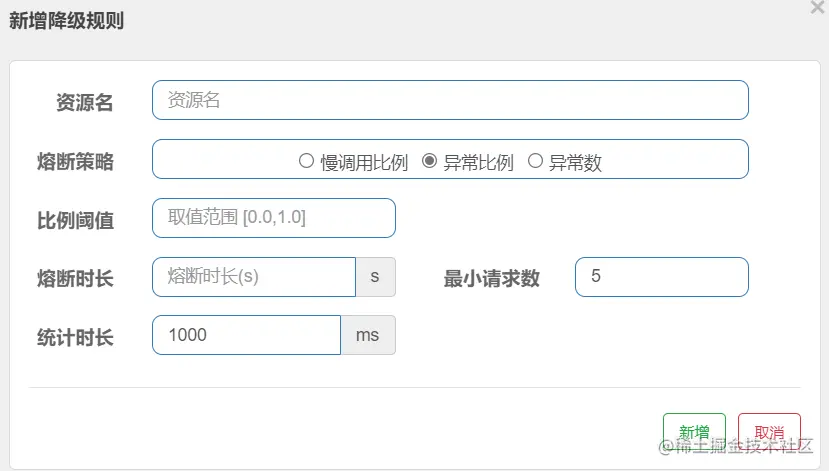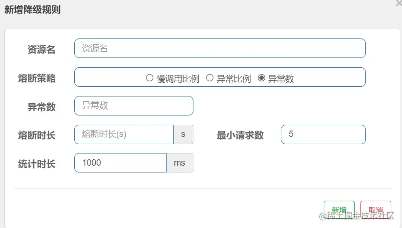 | exceptionsToIgnore | 指定排除掉哪些异常。排除的异常不会计入异常统计,也不会进入fallback逻辑,而是原样抛出。 |