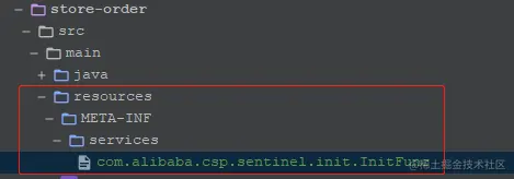 然后在 resources 下创建配置目录 META-INF/services ,然后添加文件com.alibaba.csp.sentinel.init.InitFunc在文件中添加配置类的全路径