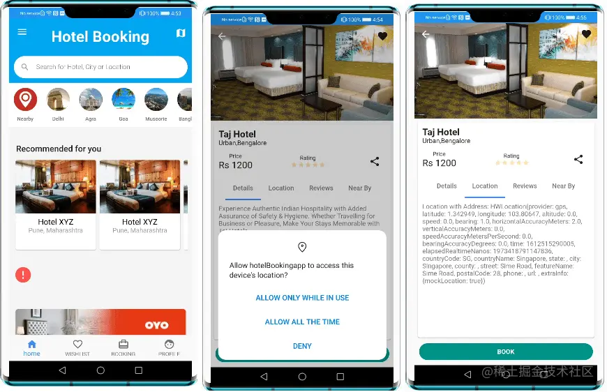 我们在外出旅行时,通常需要在酒店App中预订酒店。那么,在酒店App中是如何获取用户地理位置信息从而实现 “附近的酒店”的功能查找?为此,我开发了一款名为Hotel Booking的应用。