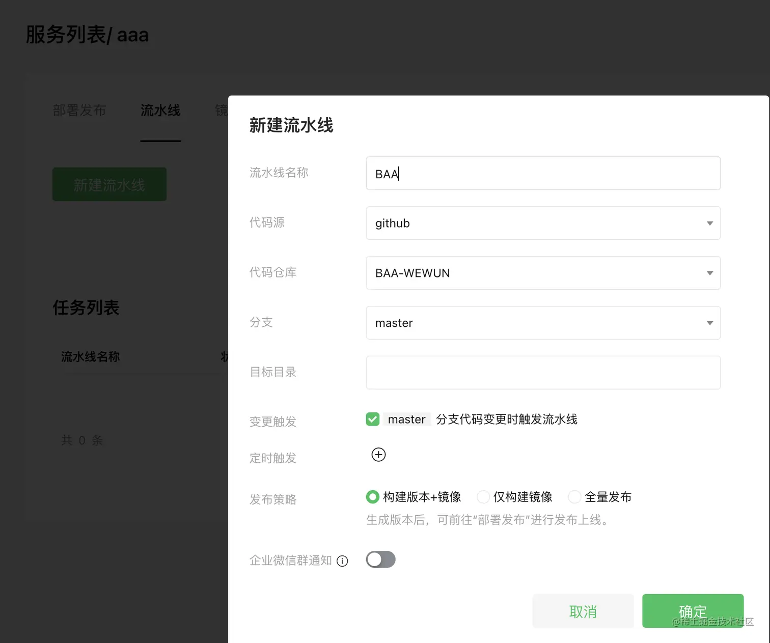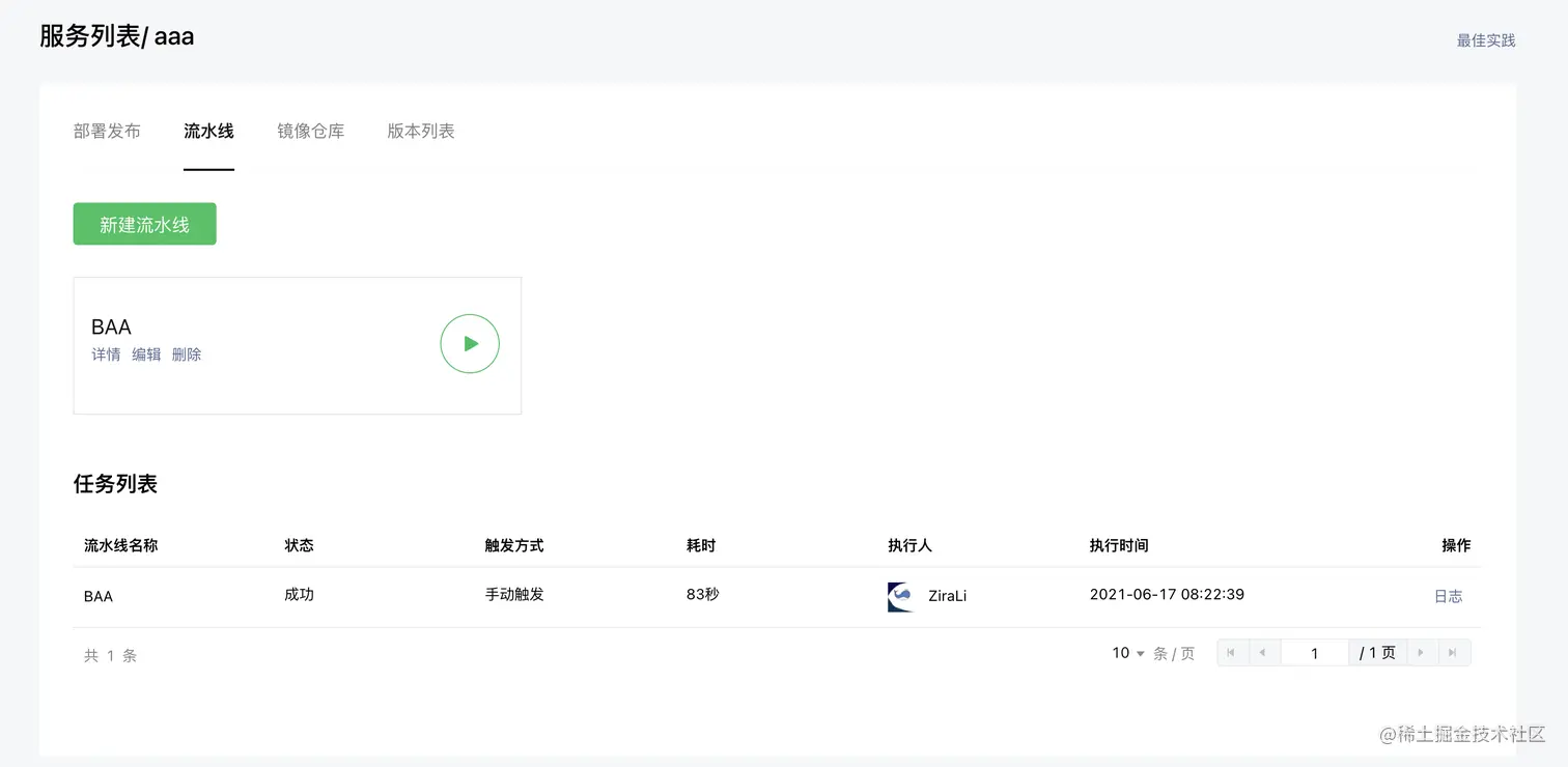 (15) 创建完成后,进入服务管理,如下图所示,选择新建流水线