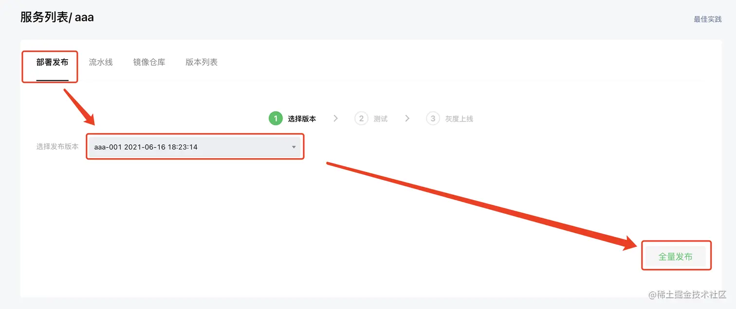 (19) 前往「部署发布」开始全量发布流程