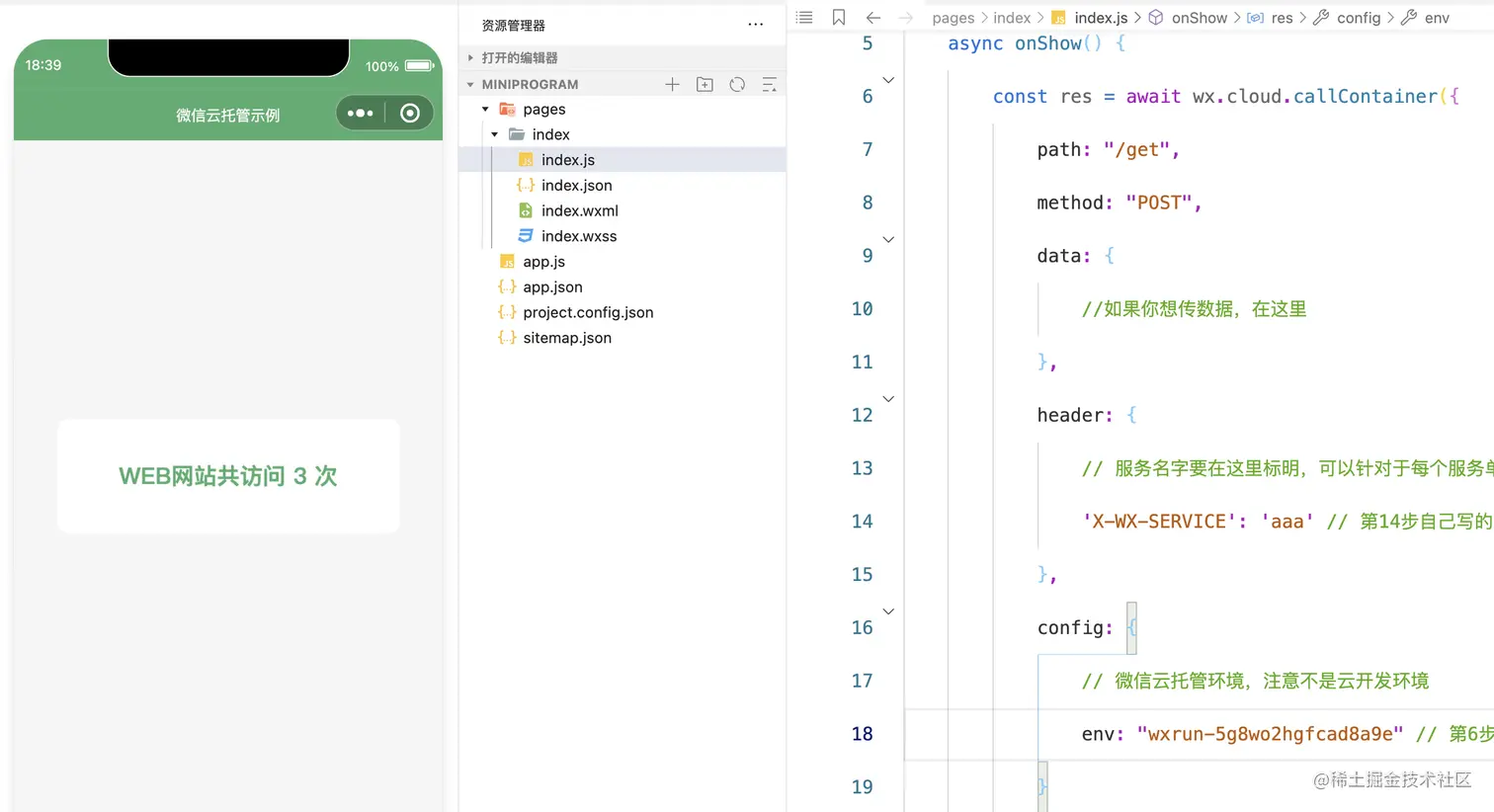 此项目基于微信云托管能力范围编写,构建了一个简单的 WEB 后端服务,统计 WEB 网页的访问日志,并保存至 serverless 形态的 mysql 数据库中,然后在小程序中调用服务接口,获得访问次数。