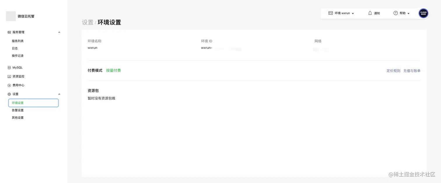 (3) 这里环境名称根据自己用途填写即可,一般小程序项目创建一个环境即可,一个环境里可以包含多个服务,可满足绝大部分企业级需求。