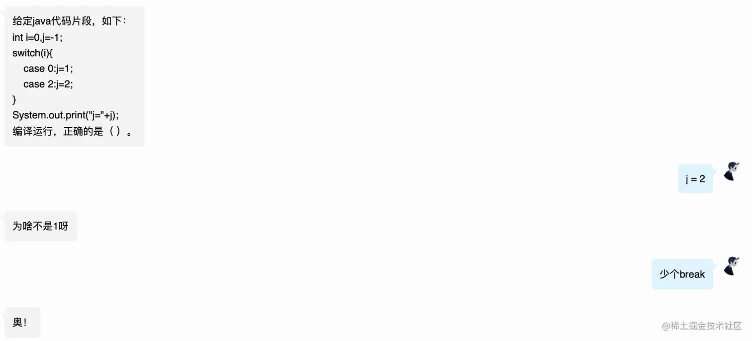 一个小姐姐拿着一个switch的选择题来问我。