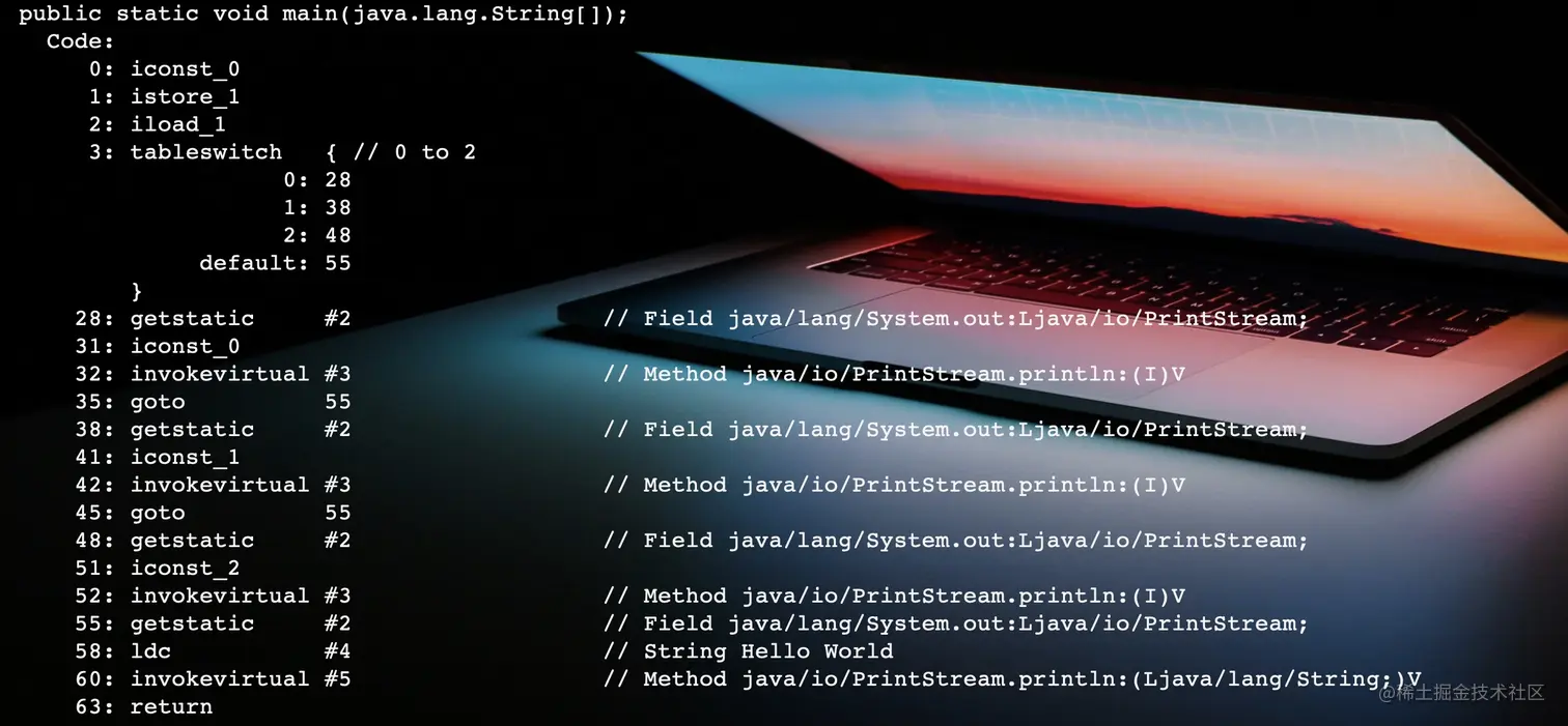 tableswitch和lookupswitch都用于switch条件跳转,前者用于case值连续,例如上面代码中的0、1、2;后者用于case值不连续。