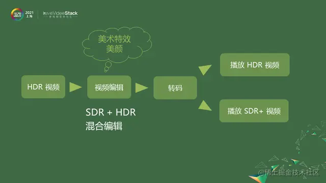 上述是技术的点,接下来我聊一聊快手做了什么?我们现在正式支持了 HDR 视频的上传、观看。观看的环节可能大家会认为没什么东西,因为很直观、直白,播放HDR视频的时候调用系统API去播放就好了,这没有值得说的地方。但其实这里面还是有很多值得说道的。