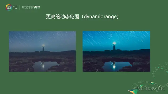 分辨率、帧率、动态范围这几项,去年快手已经支持了 1080p 高分辨率,60fps 高帧率,最后是高动态范围,正是今天我想分享的主题。