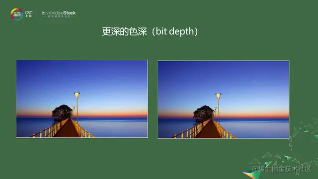从上图对比图中可以看出,左边的图中有一条一条的banding现象。右边的图片看起来更加细腻。要更深色深的原因是色域更广,显示颜色更多,对比度更高,能显示的亮度范围更大。原先8bit 数据位数不够就必须提高数据位数。进一步理论细节会在后续内容中详细讨论。