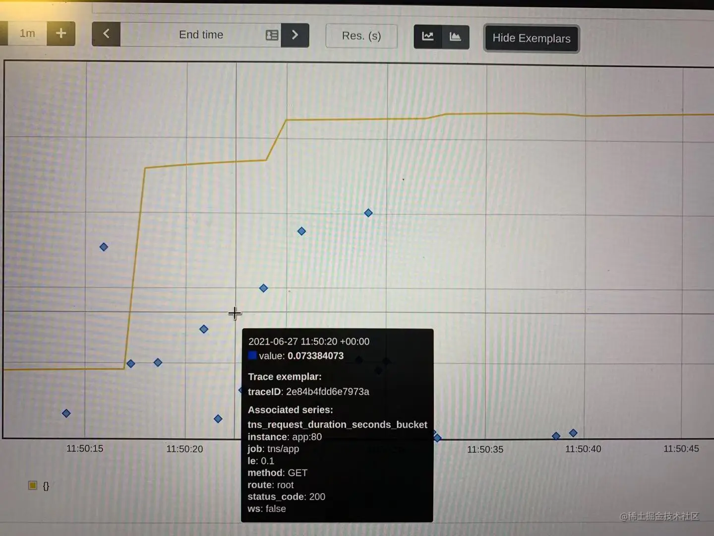 可以展示 trace exemplar 了,效果如下: