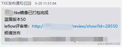 另外有一个蓝盾中机器人群通知的功能,可以自定义把需要告知的流程信息,推送到某个企业微信群中,以便大家进行确认并审核。