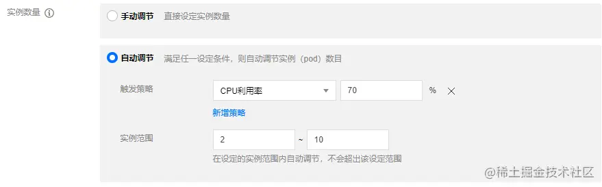 - 设置自动扩容,这里可以根据大家各自的性能瓶颈来设置阈值,最后来实现自动扩容的功能。