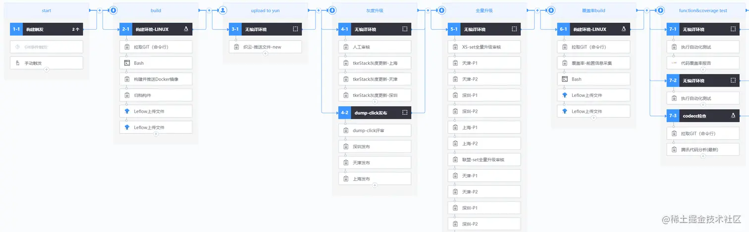 这里全程实现流水线发布,除了审核外无需人工参与,减少人为因素的问题影响。