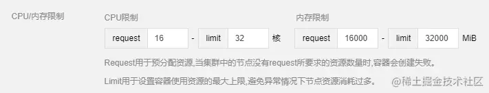 - 设置容器的request和limit,request资源可以理解为确定100%可以分配到业务的,而Limit则是超卖的资源,是在buffer池中共享的资源部分。这样的好处在于每个业务可以配置平时正常使用的request资源,当发生流量突增时由limit部分的资源来承担超过request之后的性能问题。