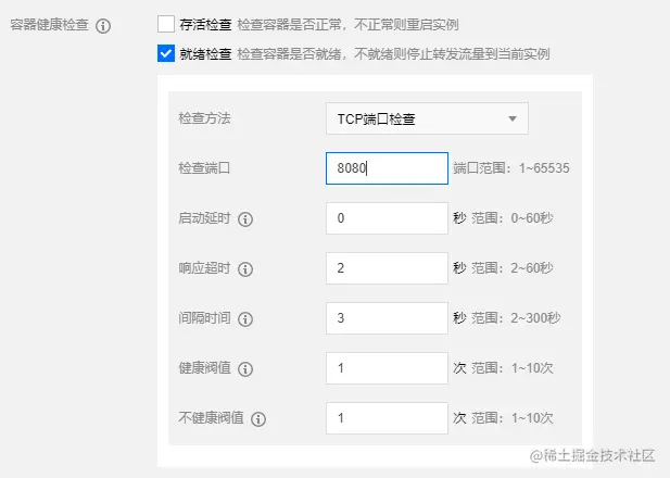 1 )探针就绪 需要在workload创建的时候,选择针对端口进行做就绪探测,这样在业务端口启动后才会投入到关联好的负载均衡里。