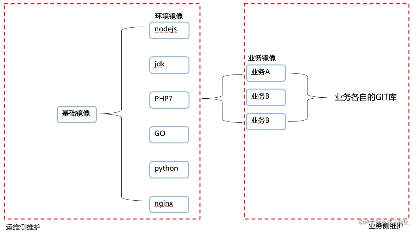 仓库及镜像的使用(右上):广告运维侧提供基础镜像(mirrors.XXXXX.com/XXXXX/XXXXXXX-base:latest),业务在 from 基础镜像的同时,拉取 git 后通过蓝盾进行镜像 build,完成业务镜像的构建。