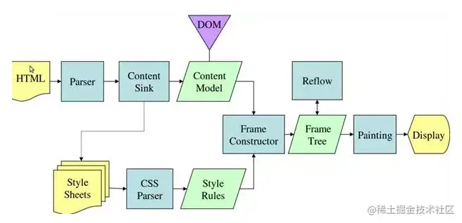 - Webkit称利用dom节点及样式信息去构建render树的过程为attachment,Gecko在html和dom树之间附加了一层,这层称为内容池,相当制造dom元素的工厂