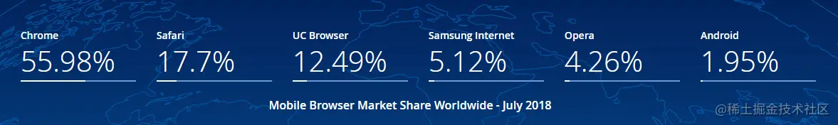 如果是全平台UC Browser也是占了很大的市场。(看着IE的占有率越来越低Chrome占有率越来越高,也甚是欣慰 ,当然了国内情可能会差一点)